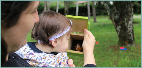 Cheminement sur un sentier pédestre à la recherche de balises indiquant des points d’intérêts écologiques aux alentours. Arrêts pour chacune d’elles pour rechercher les espèces (et leurs indices) observables pour certains mais camouflées pour la plupart.