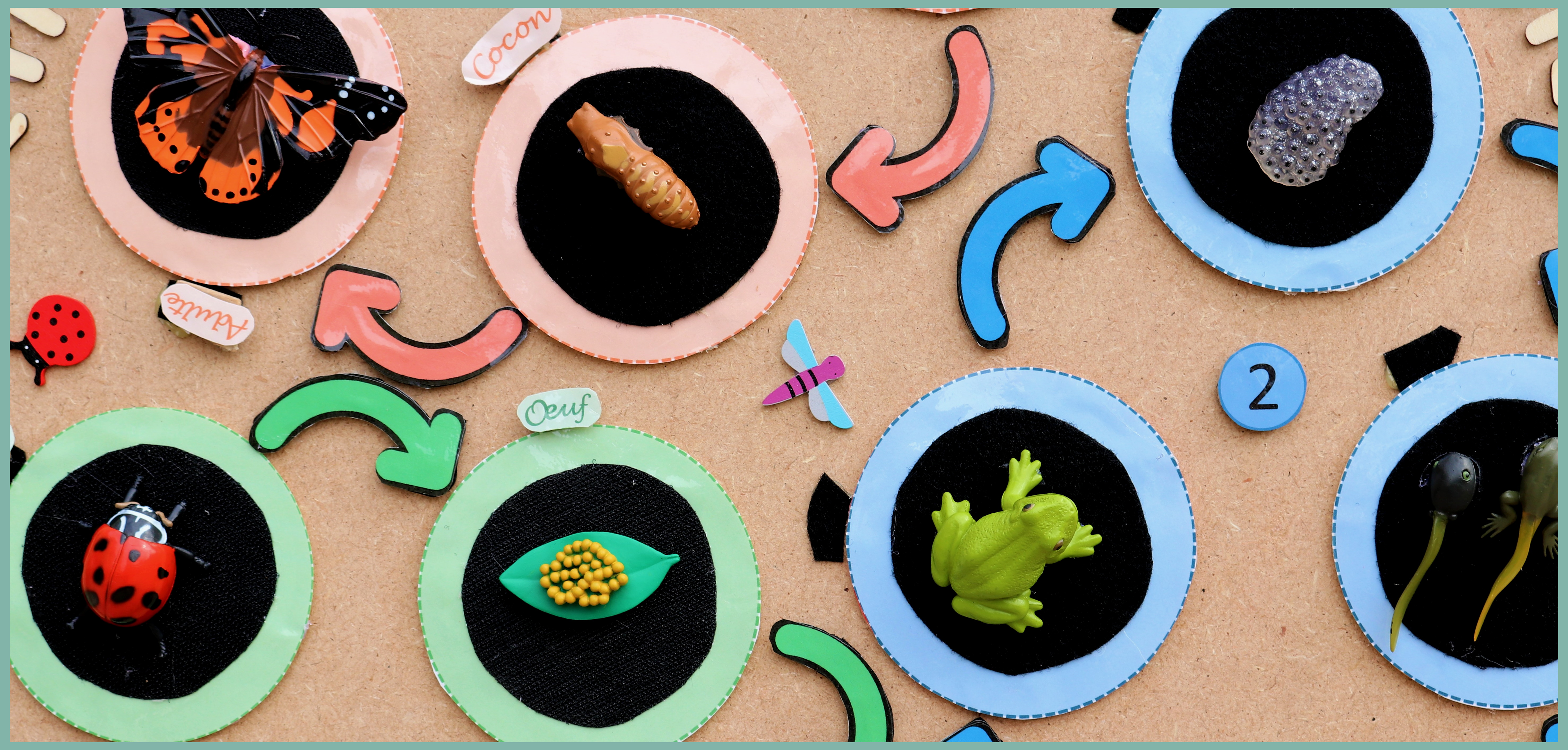 Découverte des cycles de vie appartenant à différentes espèces (amphibiens, insectes, vers). Regrouper les bonnes suites entre elles puis à l’aide du support, scratcher ces dernières en respectant leurs ordres biologiques. Enfin compléter la fiche atelier.